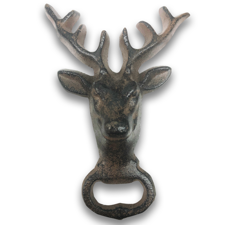 A stylish and unique cast iron stag bottle opener. A great gift item and home accessory.